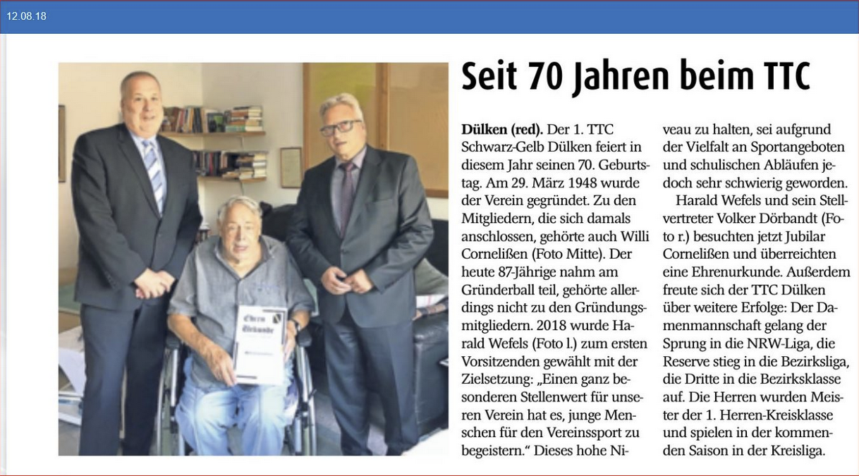 Ehrenurkunde für 70 Jahre Mitgliedschaft!!